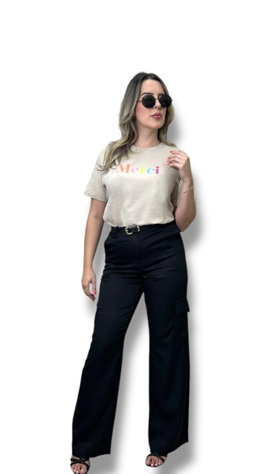 T-SHIRT EM ALGODÃO - MERCI (OBRIGADA)